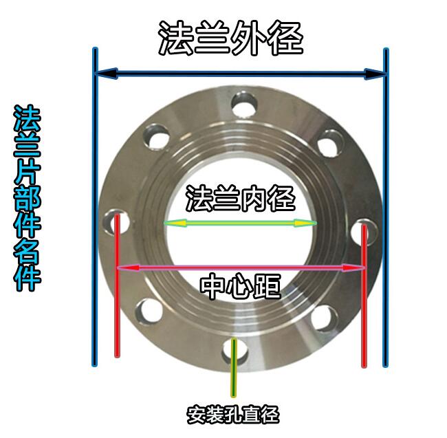 法蘭部件規(guī)格:(法蘭外徑、法蘭內(nèi)徑、中心距、安裝孔直徑)